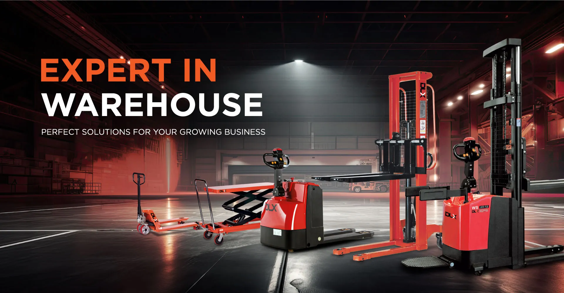 DLX Forklift แบรนด์คุณภาพจากประเทศไทย ภายใต้การออกแบบและผลิตโดย M-RICH Corporation โดยใช้ชิ้นส่วนจากผู้ผลิต OEM ชั้นนำระดับโลก DLX เป็นผู้นำด้านอุปกรณ์เคลื่อนย้ายและยกของในคลังสินค้า เช่น รถลากพาเลท รถยกสูง รถโฟล์คลิฟท์ไฟฟ้า และรถกระเช้าไฟฟ้า เรามุ่งเน้นสินค้าคุณภาพสูง ทนทาน ปลอดภัย เหมาะกับทุกอุตสาหกรรม พร้อมบริการหลังการขายที่รวดเร็วและได้มาตรฐาน เพื่อความพึงพอใจสูงสุดของลูกค้าในระยะยาว
