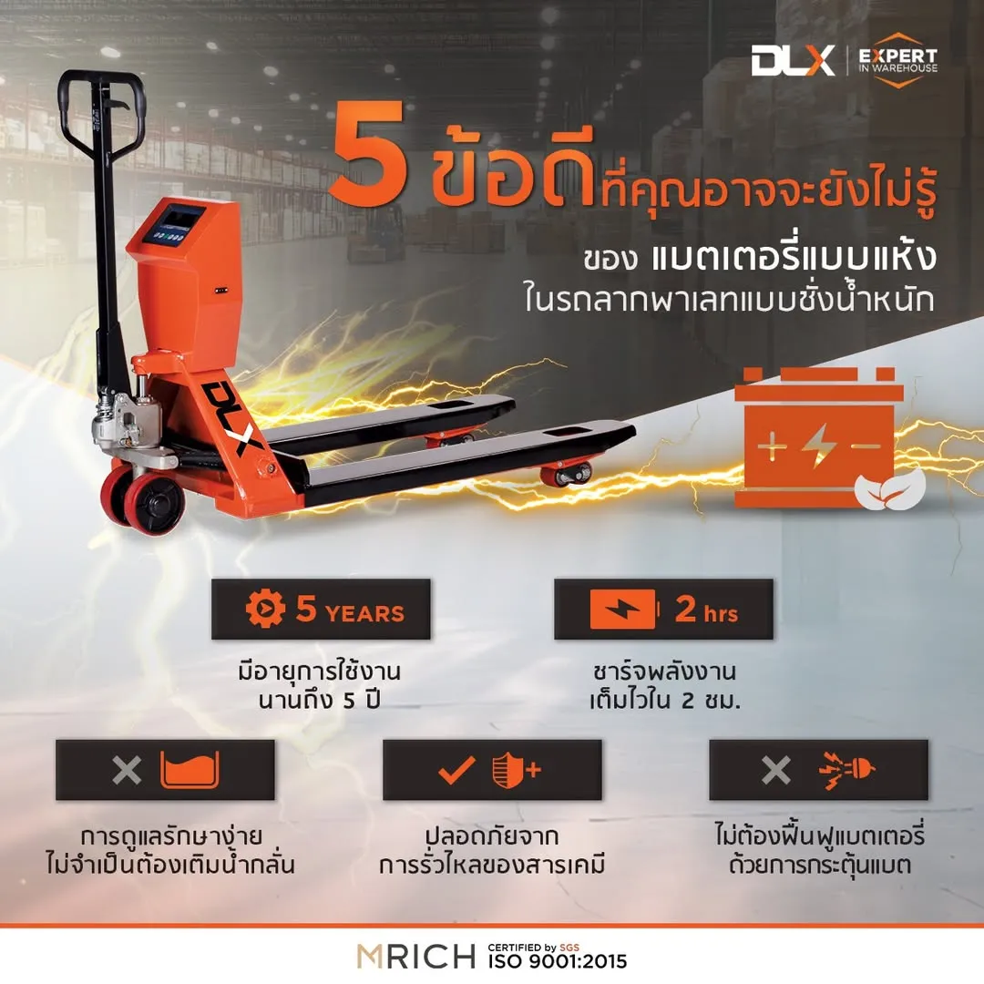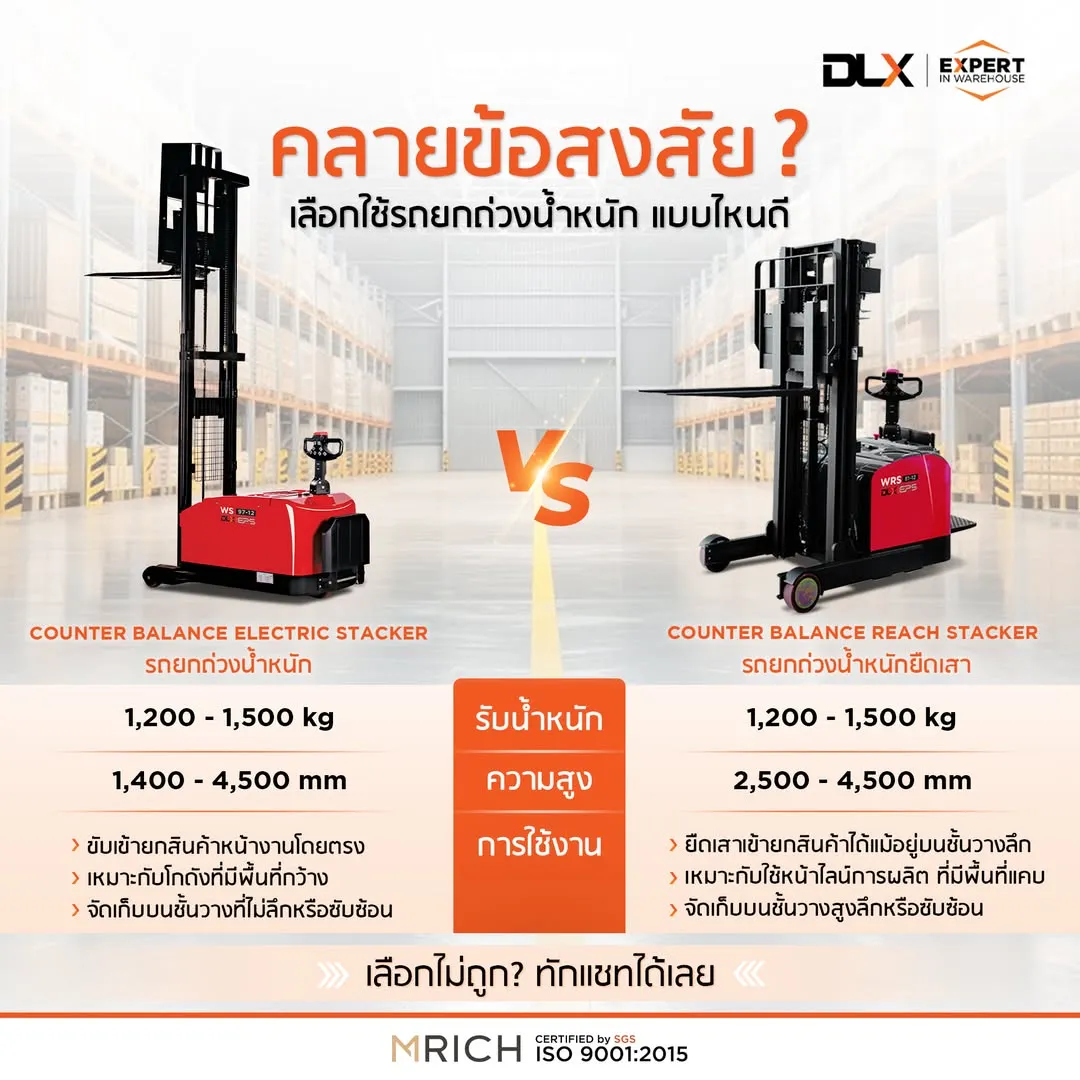 DLX Forklift แบรนด์คุณภาพจากประเทศไทย ภายใต้การออกแบบและผลิตโดย M-RICH Corporation โดยใช้ชิ้นส่วนจากผู้ผลิต OEM ชั้นนำระดับโลก DLX เป็นผู้นำด้านอุปกรณ์เคลื่อนย้ายและยกของในคลังสินค้า เช่น รถลากพาเลท รถยกสูง รถโฟล์คลิฟท์ไฟฟ้า และรถกระเช้าไฟฟ้า เรามุ่งเน้นสินค้าคุณภาพสูง ทนทาน ปลอดภัย เหมาะกับทุกอุตสาหกรรม พร้อมบริการหลังการขายที่รวดเร็วและได้มาตรฐาน เพื่อความพึงพอใจสูงสุดของลูกค้าในระยะยาว