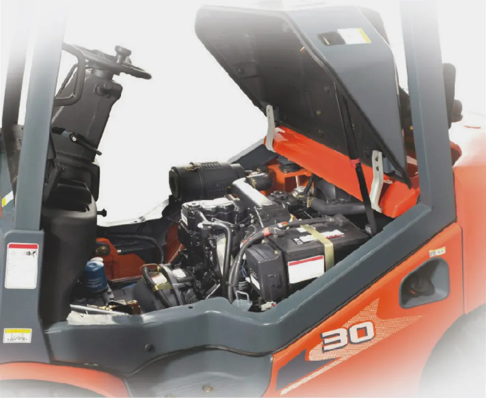 เครื่องยนต์ดีเซลให้แรงบิดสูง ทำงานได้ต่อเนื่องและมีความเสถียร เหมาะสำหรับการยกและขนย้ายสินค้าน้ำหนักมาก ระบบไฮดรอลิกตอบสนองแม่นยำ โครงสร้างเรียบง่าย ชิ้นส่วนสำคัญเข้าถึงได้สะดวก ช่วยลดเวลาในการตรวจเช็กและบำรุงรักษา